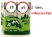 De cada esquina de la caja, mide 2 cms. de arriba hacia abajo y desde allí marca una raya hacia una lado de la marca de la moneda, recorta por esta linea siguiendo hacia el contorno de la moneda, sólo de la mitad hacia arriba. El recorte debe quedar parecido a una M. Fíjate en la imagen: