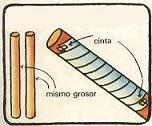Enrolla con fuerza una tirita de papel alrededor de uno de los palitos, sujetándola con cinta adhesiva.