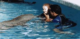 Algunos terapeutas consideran que los sonidos que emite un delfín entrenado son capaces de estimular el sistema nervioso y el cerebro humano; agregan que tiene un efecto mucho más representativo en los niños.