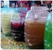 Vacía los diferentes sabores en jarras de color transparente o recipientes grandes de vidrio como los que utilizan quienes venden aguas frescas. Colócalos en el orden que tiene la bandera mexicana.