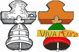 Procedimiento - Copia a la cartulina o el cartón el molde de la campana. - Remárcalo con el marcador negro y corta por los bordes. - La parte que sostiene a la campana píntala de café o amarillo. - Divide la campana en tres parte y cada una píntala de blanco, verde y rojo. Antes de que seque la pintura ponle diamantina del mismo color para darle brillo. - Puedes hacer el mismo procedimiento por el otro lado de la campana, si quieres que tenga dos caras iguales. - Amarra el cascabel a un extremo del listón y pégalo a la mitad de la boca de la campana por la parte de atrás. Si tu campana tiene dos caras, ponle listón del mismo color que le pondrás a la campana. - Sujeta la campana por la parte de arriba con un hilo y cuélgala. Peluca de Miguel Hidalgo