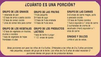 Cantidad: La Pirámide sirve de guía para determinar las cantidades de alimentos que constituyan una alimentación nutritiva. Recomienda porciones apropiadas para niños pequeños.